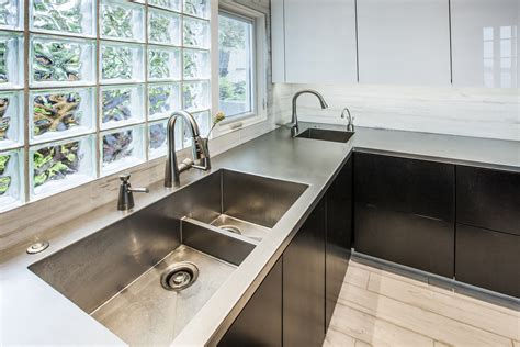 They can be slid into. Modern kitchen with zinc countertops ideas. This extremely wide sink has several levels to allow strainers, cutting boards, meat racks, and much more. Also available in a bench wood finish. Kitchen island ideas & designs.