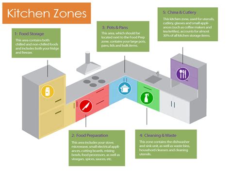 Whether you are just a small operation, or a large scale 300. Though this setup works for small or closed kitchens, letting this outdated design principle dictate your remodel can negatively affect your workflow. Depending on your space and preferences, additional zones can be set up. To create your putting away zone, make sure these items are near your fridge:.