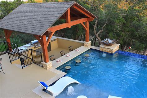 This is the one feature which allows guests in the pool to interact with guests in the ramada or outdoor kitchen in a casual and relaxed setting. Swim up bars have become so popular that it has become one of the most sought after items in any pool construction but also one of the most. It can also serve as a poolside bar where you entertain friends and family, or maybe just storage space for pool equipment. Look through swimming pool bar pictures in different colors.